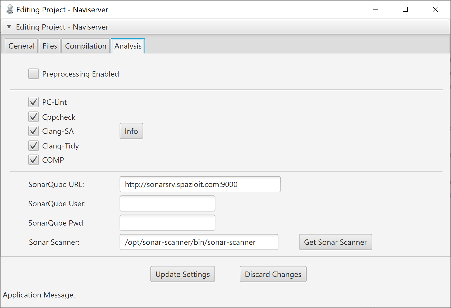 - The fields "SonarQube URL, User, Pwd and Scanner" are required by SonarQube. "Sonar Scanner" is the pathname of the Java application (SonarScanner) required to run SonarQube analyses (in the case of C/C++).