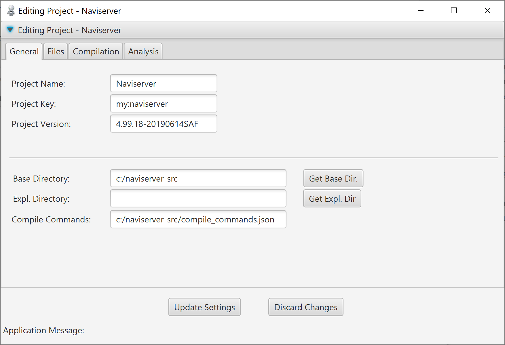 - "Compile Commands" is the selected Compilation Database Format file (if any).