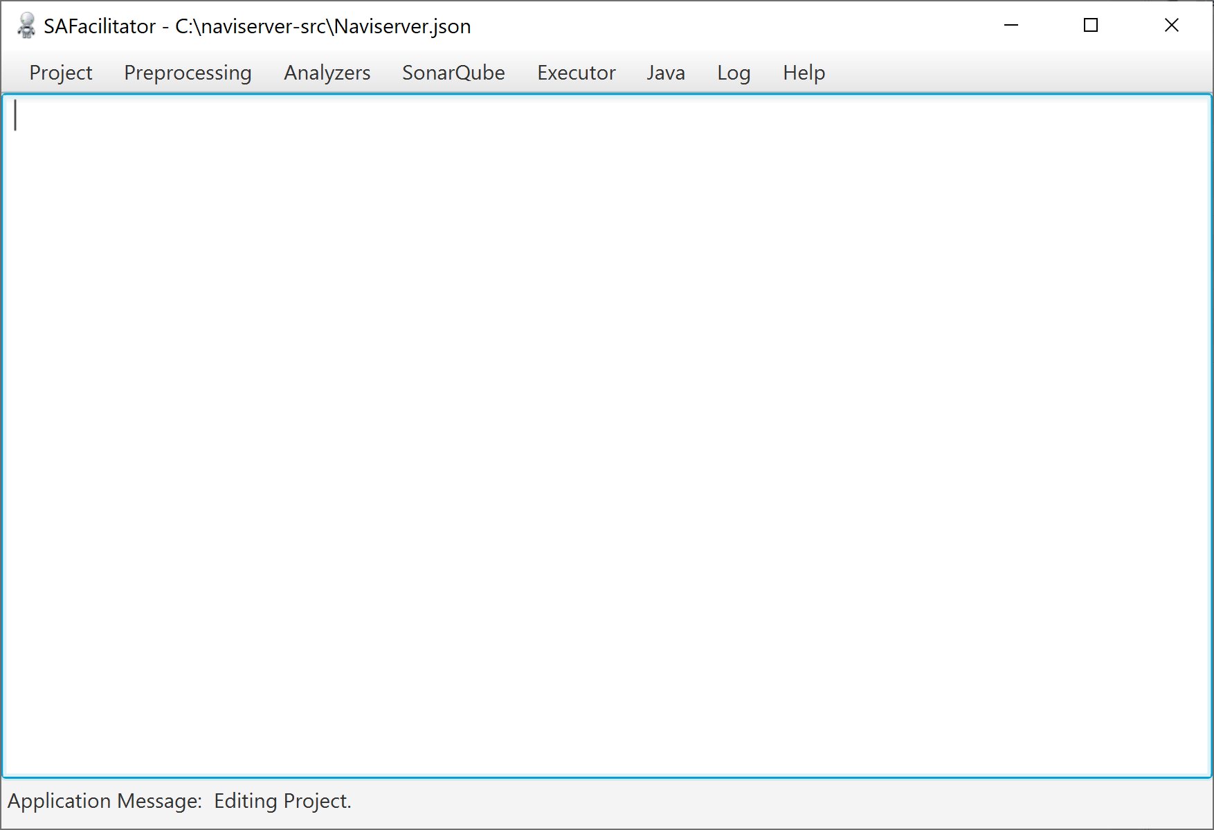 The SAFacilitatorScreens Main This is the "Main" screen of the SAFacilitator. The "Main" screen shows the menu and the console that displays the log (containing the standard output and error of the invoked commands).